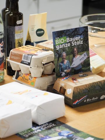 Lors des ateliers, le ministre a préparé des crêpes à partir de produits biologiques régionaux, selon une recette personnelle, illustrant dans une atmosphère conviviale les principes de l’agriculture biologique.