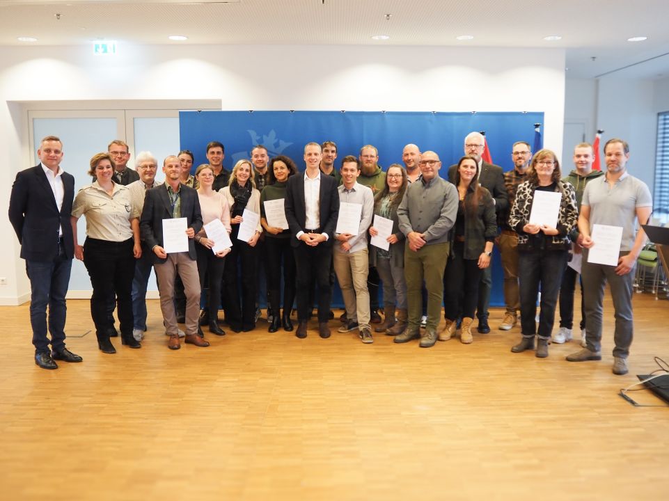 En date du 7 octobre 2025, le ministre de l’Environnement, du Climat et de la Biodiversité, Serge Wilmes, a remis pour la première fois les diplômes aux nouveaux chasseurs, en présence de Marianne Jacobs, présidente de la Commission d’examen, Jo Studer, président de la Fédération de chasse Saint-Hubert des chasseurs du Grand-Duché de Luxembourg.