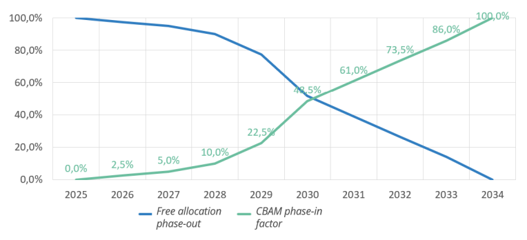 Le facteur CBAM sera graduellement réduit, pour une disparition totale d’ici 2034.