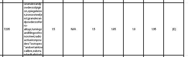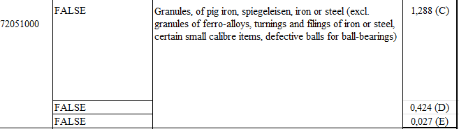 Pour l’Azerbaïdjan, tous les codes débutant par 7205 relèvent du benchmark (E), ce qui correspond à une valeur de 0,027.