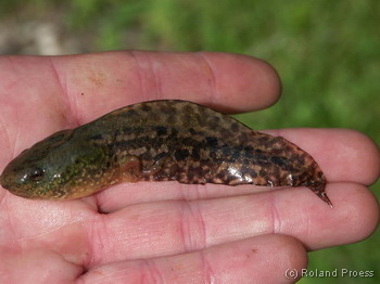 Die Bestimmung der Grünfrösche ist daher schwierig und durch äußere Merkmale allein nicht immer exakt möglich. Aus diesem Grund wurde hier nicht zwischen Kleinem Wasserfrosch und Teichfrosch unterschieden. Die beiden werden als Grünfrösche bezeichnet und gemeinsam behandelt. Der Kleine Wasserfrosch wird in Anhang IV der europäischen Habitatschutzdirektive (92/43/CEE) geführt.