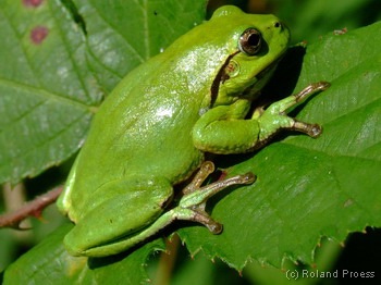 Laubfrösche sind hauptsächlich dämmerungs- und nachaktiv. Tagsüber schlafen sie meist versteckt in dichtem Gebüsch. Der Laubfrosch gehört zu den Arten die höhere Temperaturen zu ihrer Fortpflanzung benötigen und laicht hauptsächlich im Mai. Bei der Paarung umklammert das Männ-chen das Weibchen in der Lendengegend und befruchtet die Eier beim Austreten aus der weiblichen Kloake. Jedes Weibchen legt 2-10 Laichballen (2-3 cm groß) die jeweils bis zu 80 Eier enthalten.