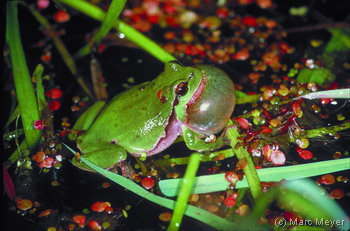 Dank seiner mit Haftballen versehenen Zehenspitzen kann der Laubfrosch, als einzige einheimische Froschart, auf Bäume und Sträucher klettern. Diese Fähigkeit dürfte zu seinem luxemburgischen Namen „Heckefräsch“ geführt haben. Zusammen mit der Kreuzkröte gehört der Laubfrosch zu den lautesten einheimischen Amphibienarten.