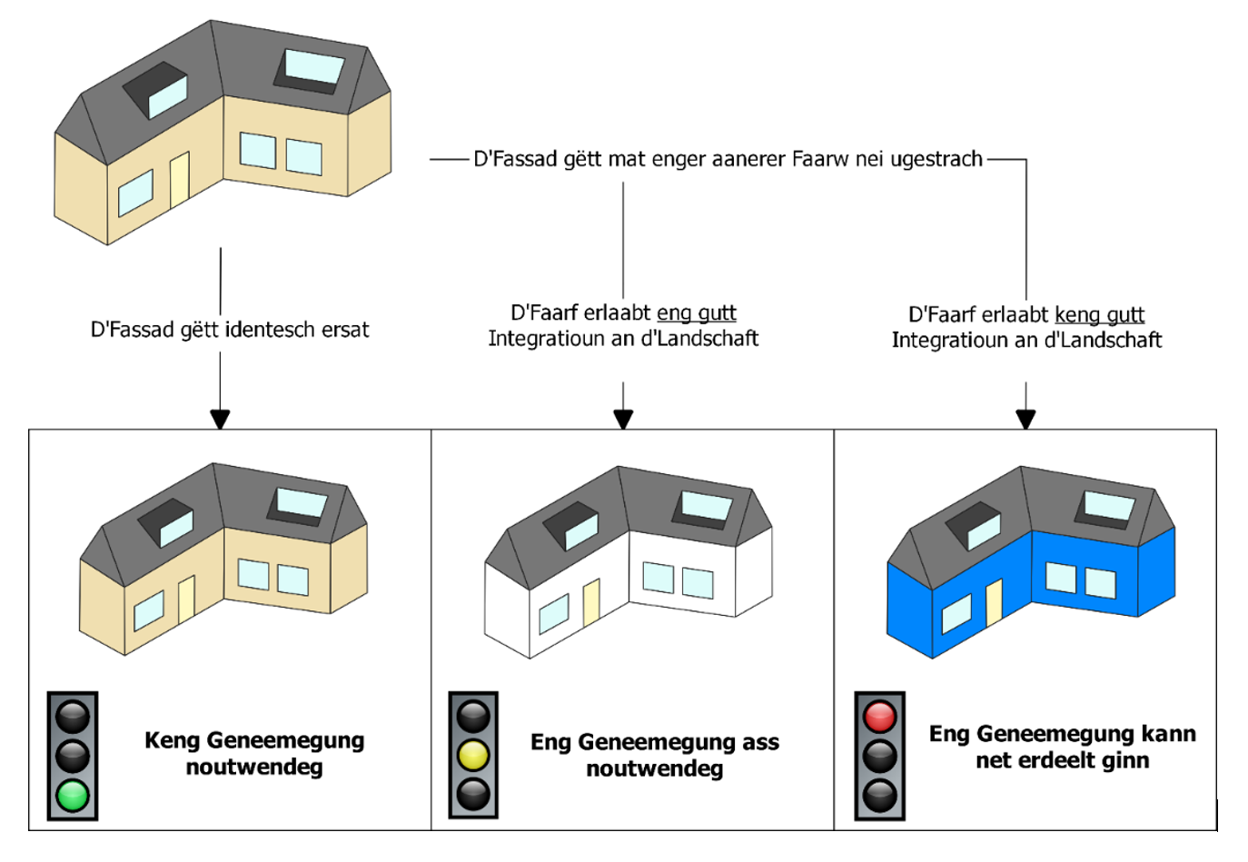 Fir folgend Konstruktiounen brauch een an der Gréngzon keng Naturschutzgeneemegung. Präzisiounen an Ofweichunge ginn erkläert.