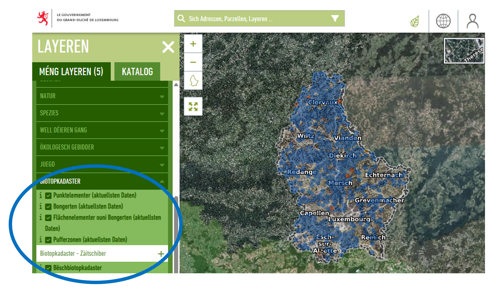 Den “Extrait de la carte topographique avec indication du lieu d’implantation du projet (1:20000)” kann een och um Geoportail.lu eroflueden.