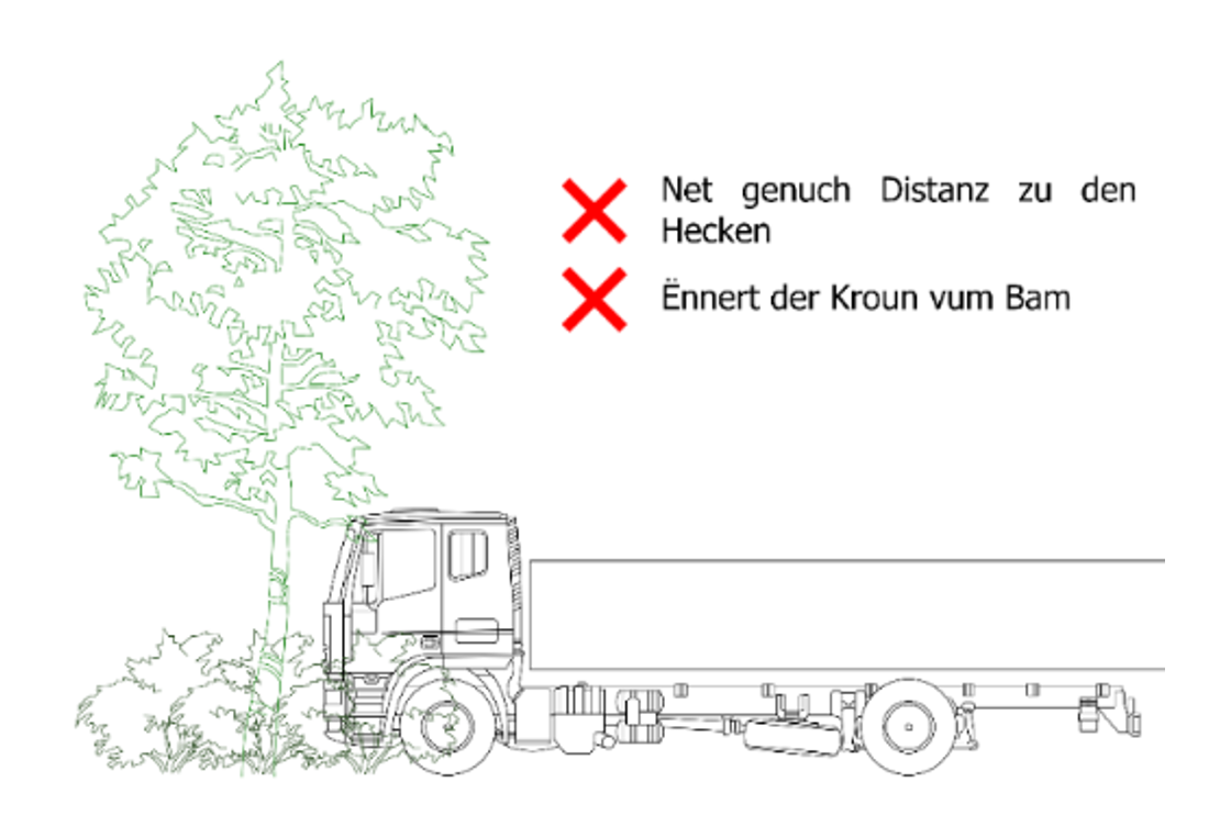 - Si mussen op oder direkt un enger versigelter Fläch (Wee, Haff...) sinn, déi laut Artikel 6 vum Naturschutzgesetz geneemegt ass