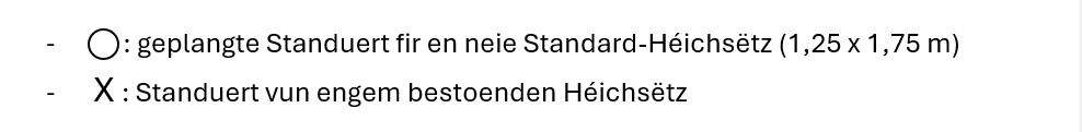 - D’Aktivitéit sollt ausserhalb vun der Brutzäit stattfannen a Follgendes ausschléissen :