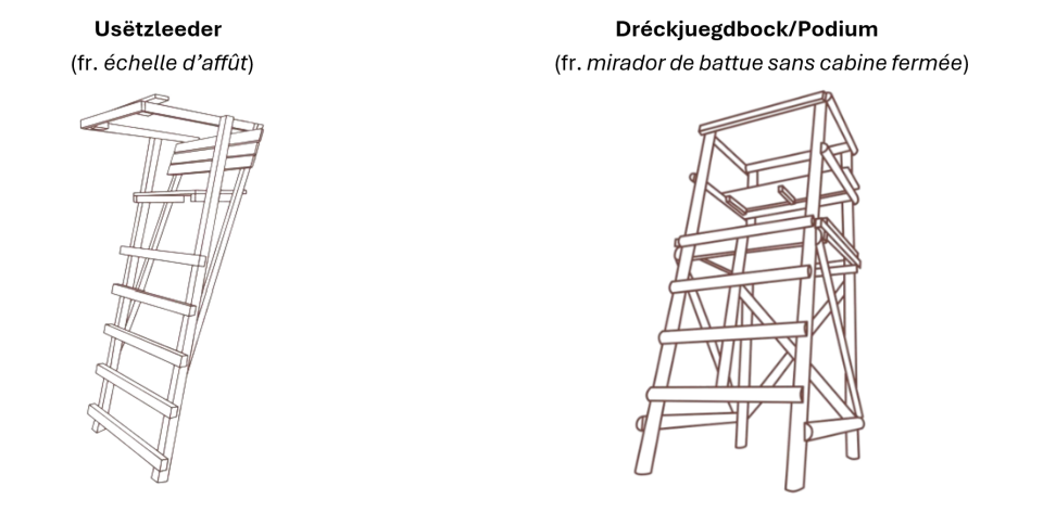 - Mobil Hochsitzer, soulaang wéi et der net méi wéi 2 pro Juegdlous sinn.